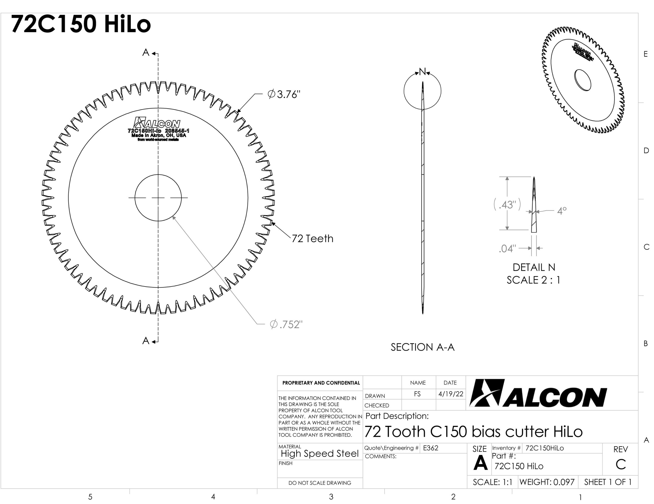 72 Teeth Bias Cutter HiLo